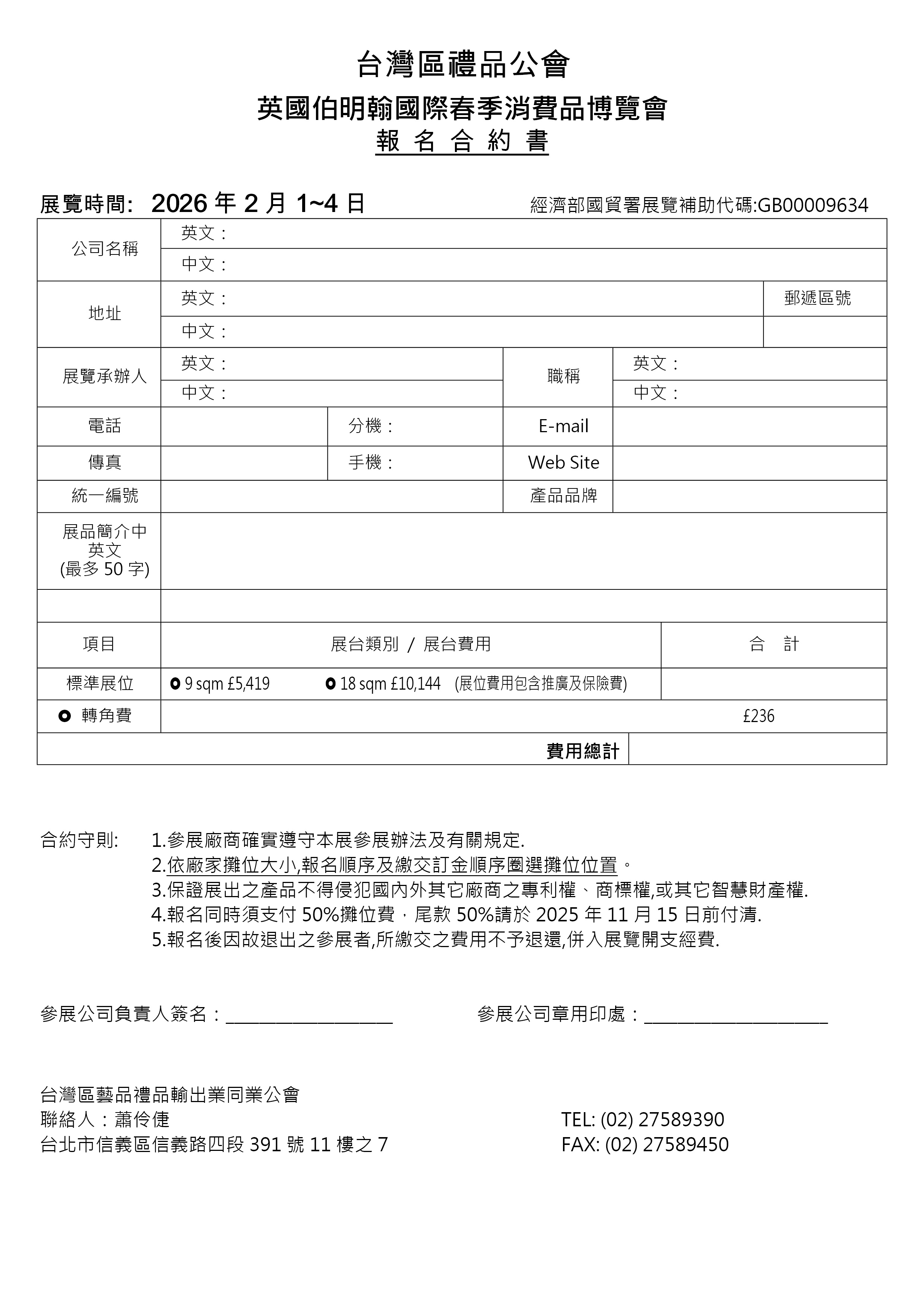 2026 英國伯明翰國際春季消費品博覽會 2/1-4 - 徵展
