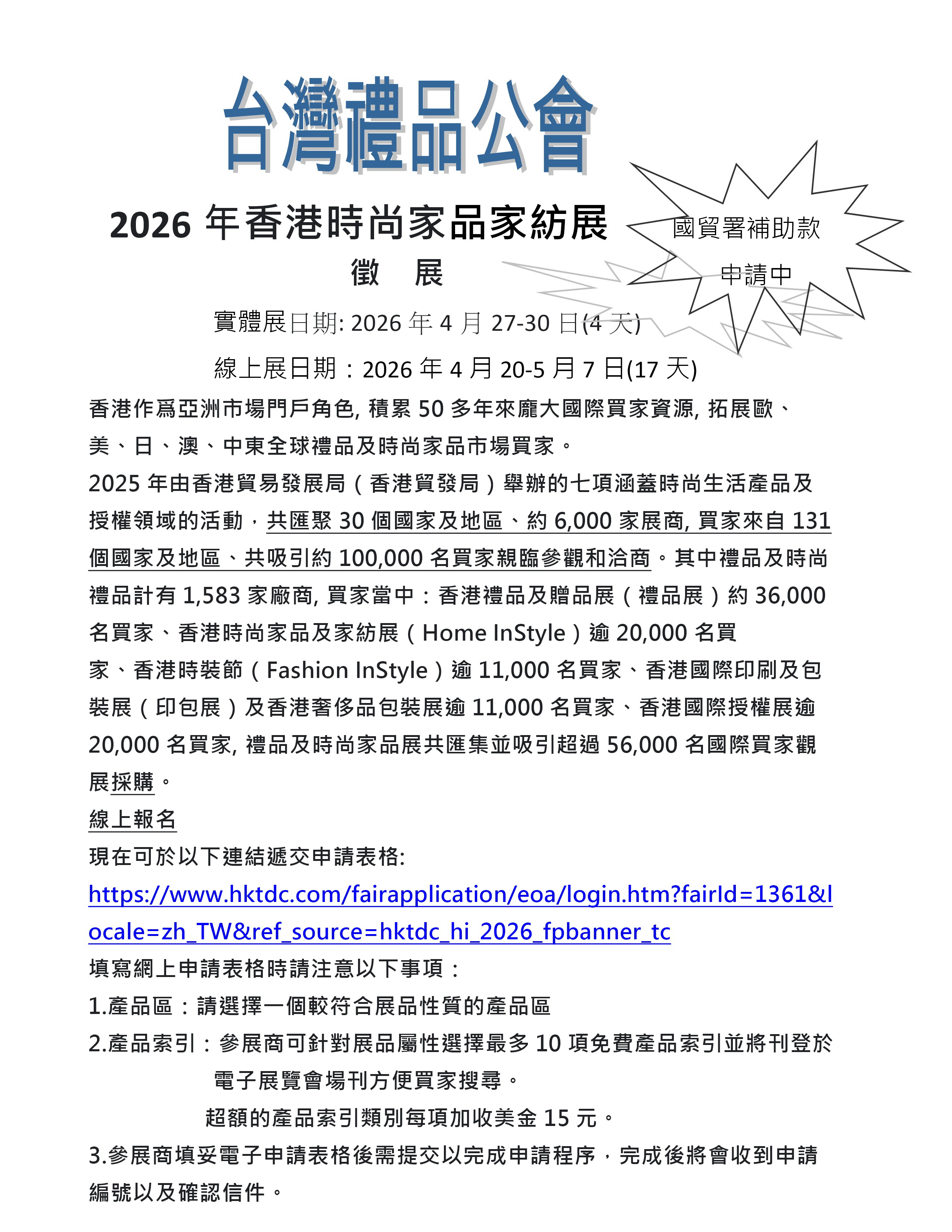 | Web: | https://www.hktdc.com/event/homeinstyle/tc | Apply: | Enter Download1 |