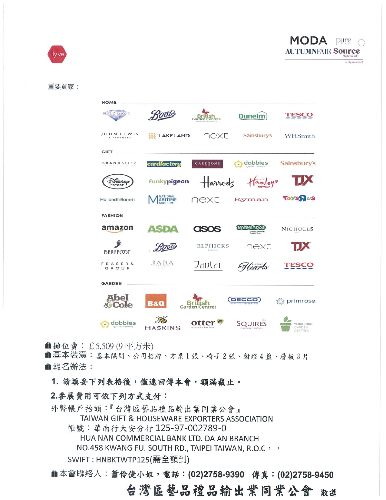 | Organ: | Group: | TAIWAN GIFT & HOUSEWARE EXPORTERS ASSOCIATION | |