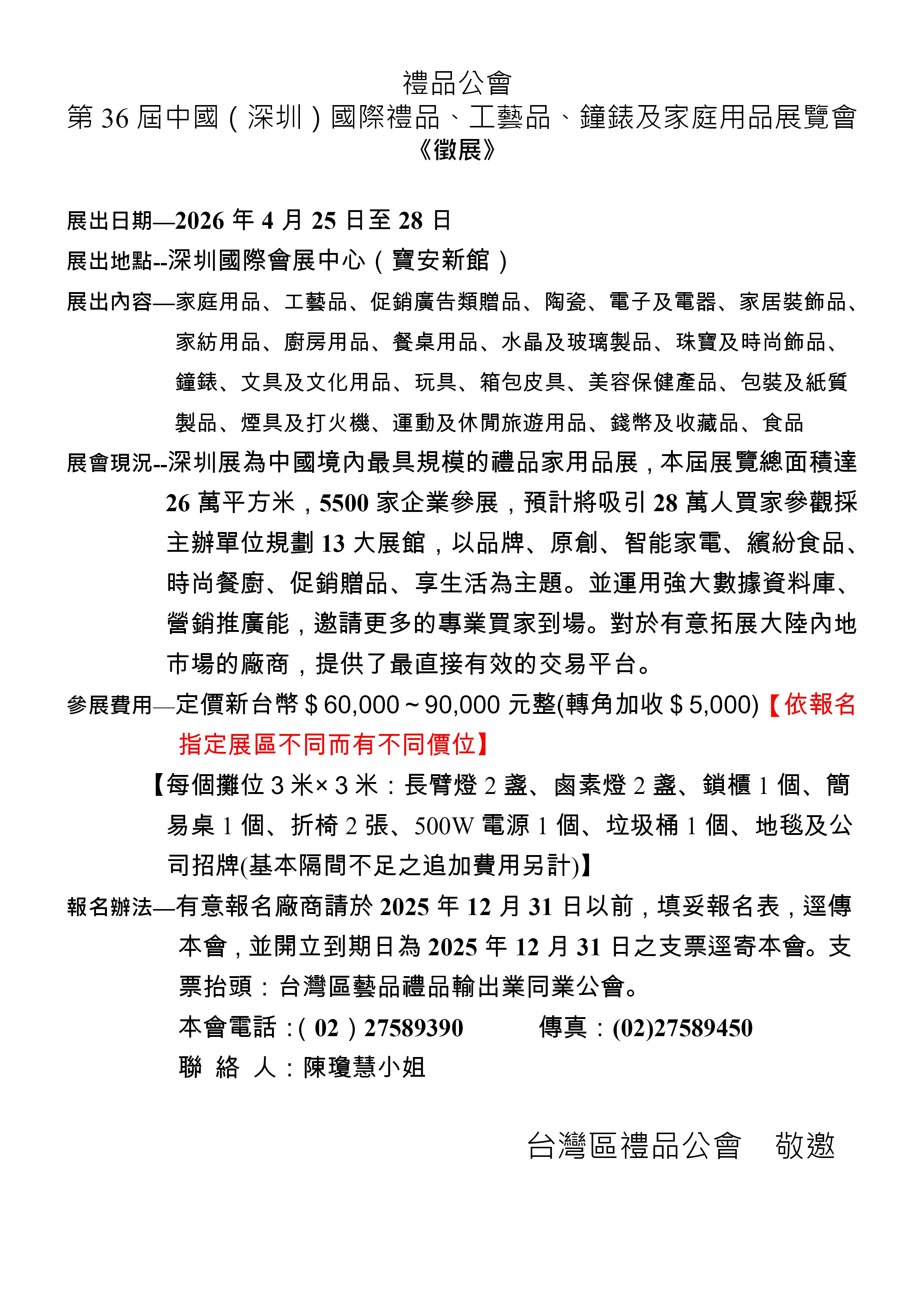 2026第36届中国深圳国际礼品及家居用品展览会4/25-28 - 徵展
